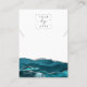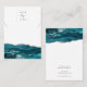 An elegant modern design featuring teal blue watercolor agate trimmed with silver faux glitter on a white background. The front of the card features space for your custom logo and necklace guides; add your contact information to the back in black sans serif font.