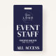 Your Logo Navy Blue White All Access Event Staff Badge. Great for fashion shows, concerts, large special events like conferences, concerts, lectures, and even birthday parties or any occasion where you want to make your guests feel special. This badge features a simple, modern, yet elegant design with a navy blue background and a spot at the top to add your company name or logo.