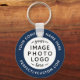 Round, blue and white keychain with your logo and custom text. Change fonts and colors, move and resize elements with the design tool.