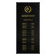 Luxury exclusive service / price list template for a barber hairstylist in faux gold on a solid black classy elegant leather look background. (Please note that the leather look and the gold effect are printed!) +++++++++++++++++ You can replace your logo with your own. +++++++++ Easy to personalise with your information on both sides!