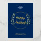 Wish a happy holiday to your business associates and your employees with this elegant simple modern holiday card. Featuring your custom logo, it will create the perfect holiday feeling to everyone who receives it. This classy and festive clean minimalist card has a watercolor leaves wreath graphic with real gold foil pressed elements on a classy navy blue background, which you can change to any other colour to match your business colour scheme, stylish yet elegant Happy Holidays text in a great circular frame. The back side has clean minimalist 2023 Calendar. This Happy Holidays card template is ready for your online personalisation. The gold foil can be changed to rose gold or silver.