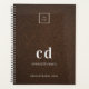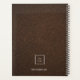Brown faux leather photo as background and white text. Personalise and add your logo, monogram initials, name and a title year. Your logo both on the front and the back. Space for your website address on the back.