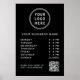 Modern professional hours of operation black poster for your business. Upload your logo and QR code for customers to scan for a list of your products, services, prices or other information. Add your business name, hours of operation or other text in simple white typography.