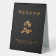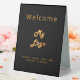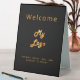 A classic black background, golden coloured text. With the text: Welcome on the front and Closed on the back. Personalise and add your business logo and text.