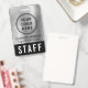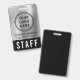 Modern professional staff, employee or crew identification badge for your business, event, conference or convention featuring your business or organisation's logo against a silver faux metallic background (you can replace this background with your own image if desired). Add a name and job title or the event and date in simple typography.