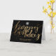 Horizontal fun modern script hand written warm and kind Business Happy Birthday Greeting Card featuring faux gold hand lettering text on a black background. Please note that the gold in this design is a flat beige yellow colour print and is not an actual foil. Change the "your logo here" image with your logo or remove it if you want to use it without a logo. Don’t forget to customise the front side and the inside text as well. The black background colour is customisable and can be changed to any other colour to match your business colour scheme.