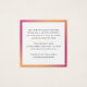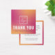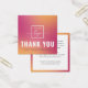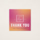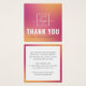 Elegant thank you for your purchase or order square mini insert card with custom logo template on a fuchsia pink and yellow orange gradient background. You can change fonts and colours with the design tool.