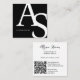 Simple bold black white logo initial hair makeup qr code with a brushed script typography square business card . Add your social media. With an elegant signature script font, all the colours are editable , add your logo.Move the letters to create your logo.