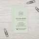 Vertical, light sage green or any color business cards with customizable template fields for your custom logo (photo or other graphic), name, title/company name, contact information and social media on the front. You can change fonts, font and background colors with the design tool.