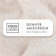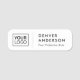 White name tag with your custom name and title. The name and logo is separated by a thin, light grey divider. Upload your own logo and create name tags for your business or event. You can change font and background colours with the design tool.