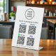 Simple modern table top pedestal sign for your business with Venmo, Paypal, CashApp and Zelle QR codes for customers to scan for payments. Add your logo, QR codes, and business name, phone number and website in simple typography.