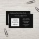 Customisable diy two-sided, front and back business cards with white text on a black background: the front with your photo and information, the back with the company logo and information. Clean, straightforward template, suitable for companies, businesses, and organisations, big or small.