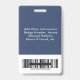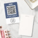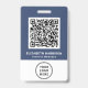 Modern and professional dark blue employee ID name badge featuring your scannable QR code (or the employee's photo), their name and position, and your business or organisation's logo. On the reverse side, add any additional information and an optional bar code.
