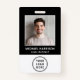 Modern and professional black employee name badge featuring their photo, name and title, and your business or organisation's logo. On the reverse side, add any additional information; input a URL website address to create a scannable QR code.