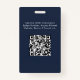 Professional blue ID badge featuring your employee's photo in a circle frame, their name in a chic white script, their title in clean white lettering, and your business or organisation's logo. On the back, add any additional information and an optional QR code.