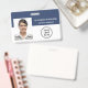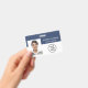 Modern and professional blue employee ID badge featuring their photo, name and position, and your business or organisation's logo. On the reverse side, add any additional information and an optional QR code.