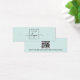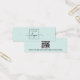 Light aqua blue earring mini product display card with centred custom logo template and QR code on the back. The earring guides can be adjusted by adding and removing spaces in the template field, and by moving the whole element in the design tool.