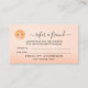 Elegant referral business card featuring your own logo (if you replace the sun image) on an elegant peach pink background design. On the back is a QR code template as well as an optional row of media icons. A great business card for a beauty salon or other professionals in the beauty industry.