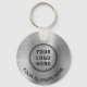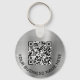 Modern promotional keychain for your company or organisation with a brushed silver faux metallic background. Add your logo, QR code and two lines of text, such as your business name, slogan, thank you, or leave blank.