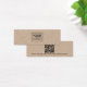 Kraft paper mini earring product display card with centered custom logo template and QR code on the back. The earring guides can be adjusted by adding and removing spaces in the template field, and by moving the whole element in the design tool.