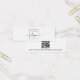 White or any colour earring mini product display card with centred custom logo template and QR code on the back. The earring guides can be adjusted by adding and removing spaces in the template field, and by moving the whole element in the design tool.