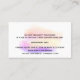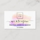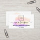 A business card for promotion of the reopening of your interior designer business after Covid-19, the corona virus. A white background with light airy pastel coloured painted brush strokes in pink, purple, yellow, faux gold. The text: We are open. Personalise and add your business logo, name, address on the front.