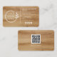 Logo Social Media QR Code Carpentry Wood Modern Business card features your corporate logo, with your name, contact and social media details on a wooden background. On the reverse is your QR code for your customers to scan. Personalise by editing the text in the text box provided. Designed by ©Evco Studio www.zazzle.com/store/evcostudio
