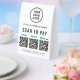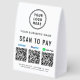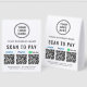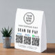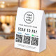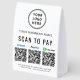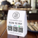 Make quick, cash-free checkout effortless with this customizable QR payment paper table tent sign featuring your Venmo, PayPal, and Cash App QR codes. Perfect for boutiques, salons, cafés, vendor booths, craft fairs, food stalls, and service providers, this sleek display helps customers pay instantly with a simple scan -- no handling cash or cards. Upload your logo and add your business name, contact details, and website or other text to create a polished, professional payment station. The tent-style shape stands securely on counters and tabletops, making it a useful upgrade for any modern, mobile-friendly business setup.