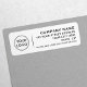 Custom logo return address labels with your custom logo and five lines of text on a white or custom color background. The text and logo are separated by a vertical line.