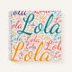 Lola. Show and wear this popular beautiful female first name designed as colourful wordcloud made of horizontal and vertical cursive hand lettering typography in different sizes and adorable fresh colours. Wear your positive american name or show the world whom you love or adore. Merch with this soft text artwork is a great present, not only in womens history month, or birthday gift.