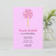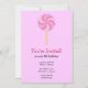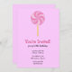 These lollipop Birthday Party Invitations feature a pink swirly lollipop / lolly on a light pink background. Click on "Customise it!" to change background colour to whatever you'd like.