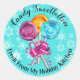 Christmas holiday "From my kitchen", "from the kitchen of" baking, bakery, kitchen or gift tag sticker with snowflakes background; 3 colourful swirled candy lollipops on sticks with a bow for candy and dessert makers, pastry chefs who work with sugar, and others who love colourful, sweet fun!