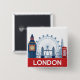 London pin button depicting Big Ben, London Eye, Tower Bridge and the Shard,