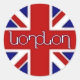 'London' ambigram on a stylised British flag (the UK Union Jack) that has been squared to maximise the rotational symmetry and had bleeding and edge darkening effects added for visual appeal.  Such ambigrams have been made popular in Dan Brown's book and movie Angels and Demons.