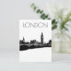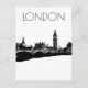 Silhouetted monochrome view of Big Ben against the skyline and bridge over the River Thames.