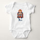 This adorable personalised baby bodysuit features a whimsical lion perched playfully on top of a classic red London double-decker bus. This customisable tee is perfect for any little explorer. Personalise it with your baby's name for a unique and charming outfit.