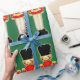 Creative London, England Christmas holiday gift wrap or party decoration featuring Buckingham Palace guards pattern.