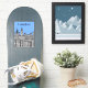 Sticker in a black and white drawing of the London, England Skyline, with blue sky