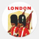 Vintage travel poster for London showing Royal Guards Trooping the Colours.