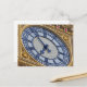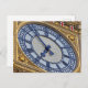 A beautiful close up view of the clock face on the Elizabeth Tower in London printed on a postcard.