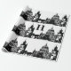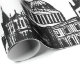 Elegant black and white vintage watercolor London, England skyline monogram wrapping paper. Perfect for gift wrapping. Graduation, wedding, birthday.