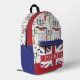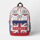 London, England pattern with English elements such as phone booth, double decker bus, London Bridge, the London Ferris Wheel.  Union Jack Flag motif on front pocket.  Please note that colours are not official colours--they have been modified to coordinate with the colours in the pattern.  Composite design by Holiday Hearts Designs (rights reserved).
