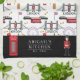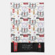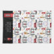 London, England pattern with English elements such as phone booth, double decker bus, London Bridge, the London Ferris Wheel and more tea towel design. Personalise bottom with your name and/or other text. Composite design by Holiday Hearts Designs (rights reserved).