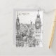 This travel postcard, in hand drawn sketch-style, showcases a view of London's skyline.