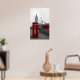 Red telephone box, London black and white looking at Bridge Big Ben and the houses of Parliament by Parliament Square and a Red London transport bus
