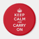 The classic Keep Calm and Carry On design, with crown. In white lettering on a classic red background.