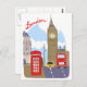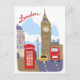 Illustration of London featuring a classic UK red telephone booth or box, a double-decker bus, and Big Ben, the nickname for the Great Bell of the clock at the north end of the Palace of Westminster. Artist: Giovana Medeiros