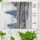 A beautiful view of Waterloo Bridge and buildings of the City in London in England printed on a souvenir tea towel.