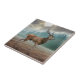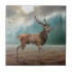 Lone Deer In Misty Forest Ceramic Tile