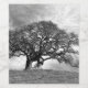 A black and white photograph of an impressive oak tree with room for text to personalise your label.